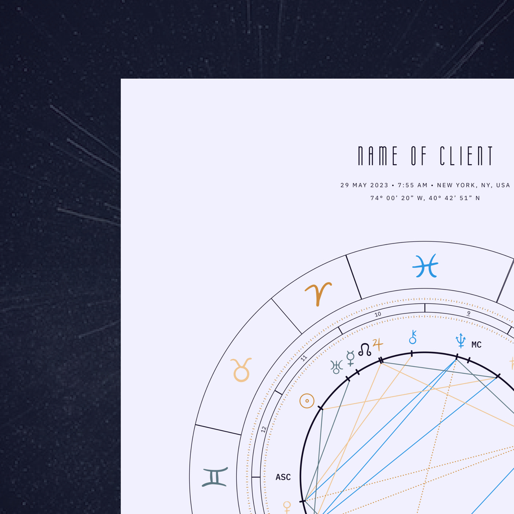 Your purchase includes a personalized introduction description of your Sun, Moon, and Rising signs from a Golden Age perspective and new Archetypes. You will also receive and digital download, so when you're on the go or binge watching astrology content on the socials, you'll have your chart on hand!